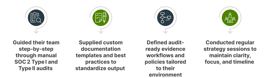 The company opted for a fully manual path toward SOC 2 Type I and Type II compliance. While this kept them independent from automated tools, it raised the risk of gaps, inefficiencies, and procedural uncertainty, especially for a growing SaaS product without a dedicated compliance team.